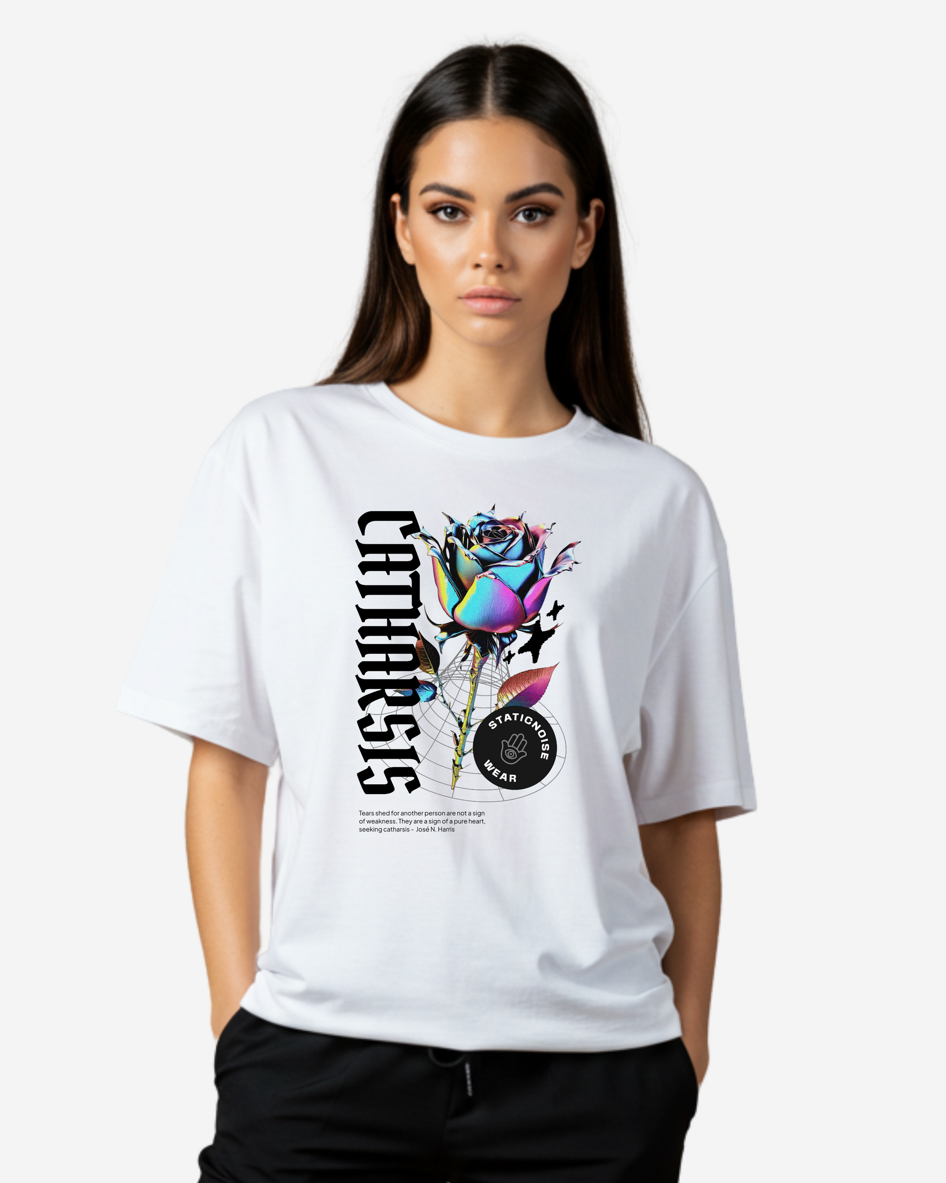 The Catharsis Women's Oversized T-Shirt is more than just a tee—it’s a statement of release, growth, and bold self-expression. Designed exclusively for women, this oversized shirt combines a relaxed fit with soft, heavyweight cotton for ultimate comfort and durability. Featuring a minimalist yet powerful “Catharsis” graphic, this t-shirt channels the spirit of transformation and emotional freedom.