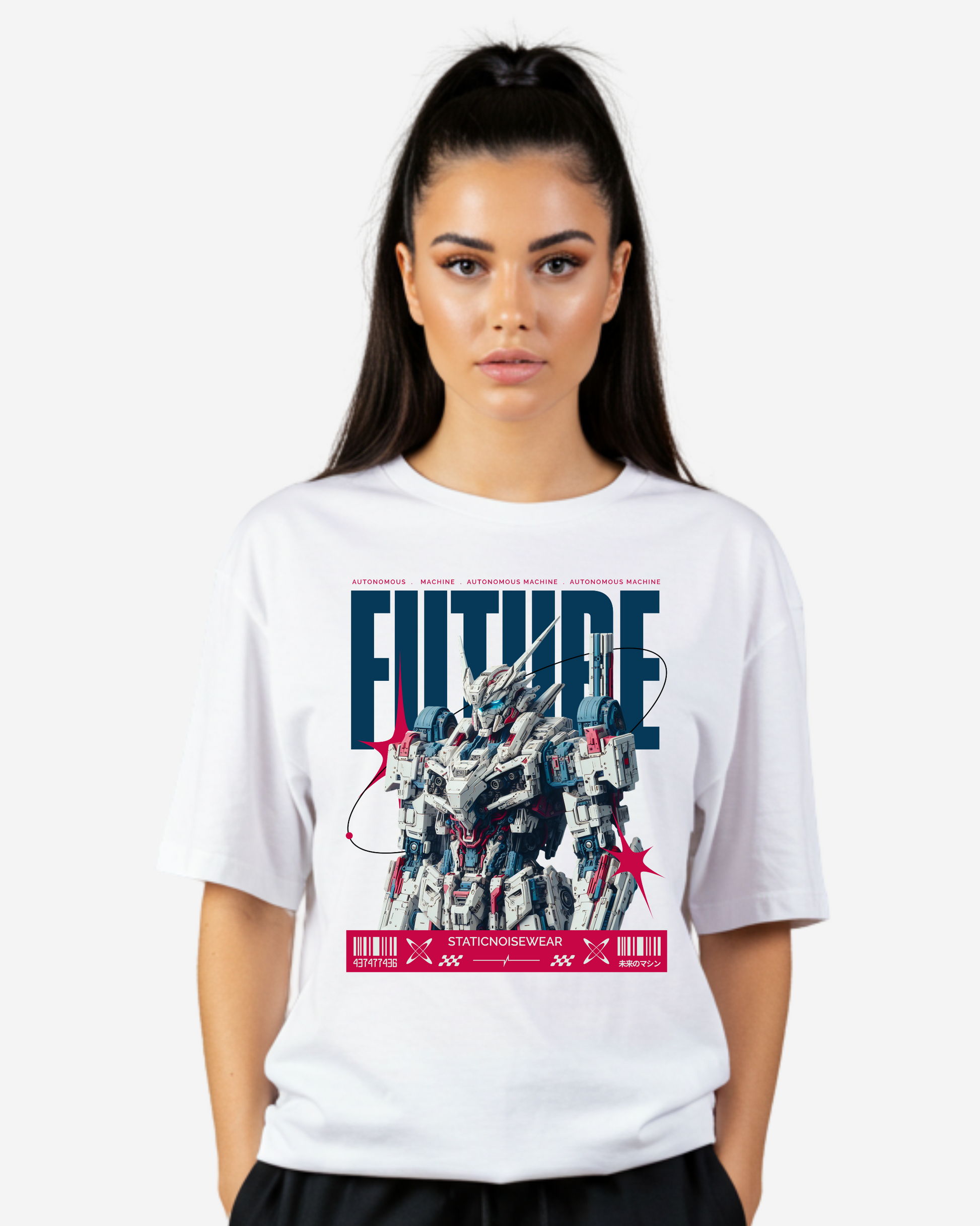The Future Machine Women's Oversized T-Shirt is built for the bold. Featuring a high-impact tech-industrial graphic—inspired by circuit schematics, robotic forms, and digital decay—this tee channels the power of automation and raw innovation. It’s a statement for women who are part human, part machine, and all future.