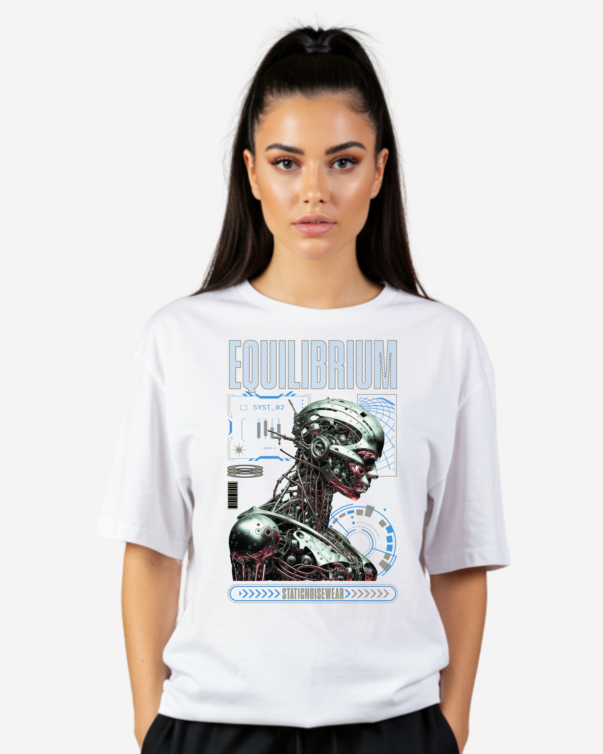 The Technology Graphic Women's Oversized T-Shirt is made for women who thrive at the intersection of innovation and expression. Featuring a sleek tech-inspired graphic—think circuit board lines, digital code, or futuristic UI elements—this tee brings a clean, modern aesthetic to bold streetwear.